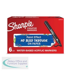 Sharpie Creative Marker Bullet Tip Black (Pack of 6) 2218123. Acrylic, water-based paint pens . Bullet Tip. No-Bleed ink which writes on most surfaces . Boldly marks on metal, wood, ceramic, glass, rock, canvas and more.