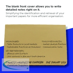 This Exacompta Guildhall pocket wallet is made from premium quality 315gsm manilla and features a full flap for additional security of contents. The wallet has a 35mm gusset and can hold up to 350 sheets of A4 or foolscap paper. This pack contains 50 buff wallets, ideal for colour coordinated filing.