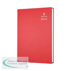 Collins A4 Desk Diary Week To View Red 2026 40-15.26. Week to view. Sewn cased in durable leathergrain. Includes current and forward year planners. Features a web directory and staff holiday planner. Printed on quality white wove paper.