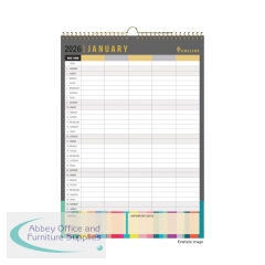 Collins A1 Holiday Planner 2026 CWC10-26. Shows a full 12 calendar months at a glance. Write on and wipe off laminated surface. Writing space for each day. Space for up to 38 staff members names and holidays. Includes activity labels and pen.