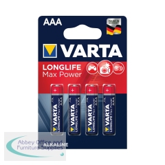 Varta Longlife Max Power AAA Battery (Pack of 4) 04703101404. AAA batteries for high tech devices. Suitable for use in digital cameras, blood pressure monitors, game controllers and more. Blister pack with \'single press out\' feature.