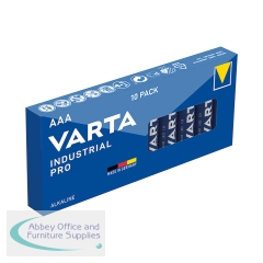 Varta Industrial Pro AAA (Pack of 10) 4003211111. High quality alkaline batteries made in Germany. Ideal for: tor use in torches, alarms and computer equipment. Voltage: 1.50. Size: AAA. Pack of 10.