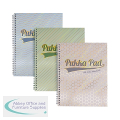Pukka Pad Pastel Jotta Pad A5 Assorted (Pack of 3) 2011-PST. 200 pages. 80gsm paper. Ruled with margin. Holographic sticker on first batch. Cover: 400gsm card in 3 assorted colours (Pink, Green and Blue).
