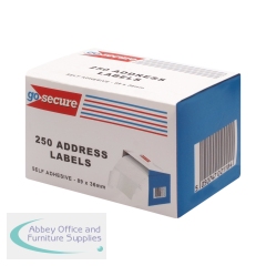 GoSecure 250 Address Labels (Pack of 1500) PB02278. Permanent adhesion for labelling envelopes and more. Supplied in a handy dispenser box with perforations between each label for ease of application. These labels measure 89x36mm.