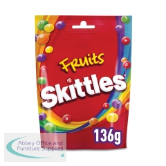 Skittles Chewy Sweets Fruit Flavour Pouch Bag 136g (Pack of 15) 124843. Fruit flavoured sweets. Taste the rainbow. Flavours: Orange, Lime, Lemon, Blackcurrant and Strawberry. Suitable for vegetarians.