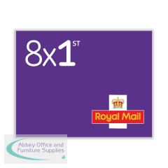 Royal Mail First Class Stamp Book (Pack of 8) 1CB8SINGLE. Type: 1st Class Stamp (First Class). Pack Size: Book of 8 Single Letter Stamps. Manufacturer: Royal Mail. Manufacturers OEM: 1CB8SINGLE. Posting Items: 240mm x 165mm, 5mm thick and weight of 100g.