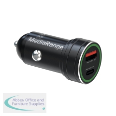 Media Range 20W Car Charger USB A/USB C Port MRMA120. Output for charging via the cigarette lighter in vehicles with 12/24V on-board power. For simultaneous charging of up to two devices via USB A and USB-C.