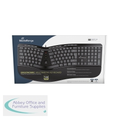 MediaRange Wired Ergonomic Multimedia Keyboard Black MROS120-UK. 124 keys and scroll-wheel. Plug & Play - ready for immediate use. With wrist support and practical height adjustment for best comfort.