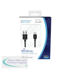 MediaRange Charge and Sync Cable USB 2.0 to Apple Lightning. Round cable shape measuring 1.0m long suitable for iPhone, iPad or iPod with lightning port. Apple Mfi certified. USB 2.0 high speed data transfer rate up to 480 Mbits.