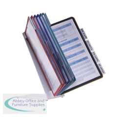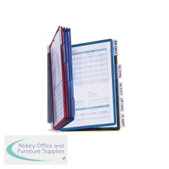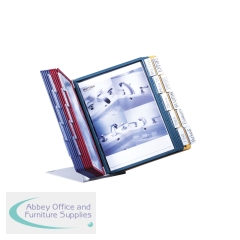 Durable Vario Desk Unit 10 Display Panel System Assorted 5570/00. Complete ready to use. With ten A4 display panels. Each unit has one sturdy table display stand, 10xA4 display panels complete with tabs (2 each of black, red, yellow, green and dark blue).
