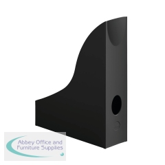 Durable Magazine Rack ECO Black 775701. Ideal for storing catalogues, brochures, marketing materials and more. Made from Premium recycled materials. Grip hole for easy handling. Dimensions (WxDxH): 73x241x306mm. Colour: Black.