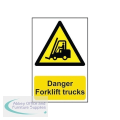 Spectrum Safety Sign Danger Forklift Trucks PVC 400x600mm 4101. Enables employees and visitors to take adequate safety measures to avoid personal injury. Designed and manufactured in the UK. Conforms to the BS EN ISO 701. Self-adhesive semi-rigid PVC.