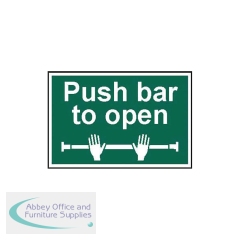 Spectrum Safety Sign Push Bar To Open PVC 300x200mm 1523. Advises actions needed to exit the premises in an emergency evacuation situation. Designed and manufactured in the UK. Material: Self-adhesive semi-rigid PVC.