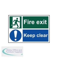 Spectrum Industrial Fire Exit Keep Clear S/A PVC Sign 300x200mm 1540. Safety sign to indicate a fire exit that needs to be kept clear. Professional and informative. Made with high-quality S/A PVC. Colour: Green, Blue and White. Size: 300x200mm.