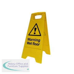 Spectrum Industrial Heavy Duty A Board Warning Wet Floor 4702. Brightly coloured safety sign. Printed \'Warning Wet Floor\' message with universal symbol. Handle for easy carrying. Folds flat for storage and transport.