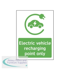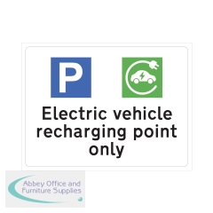 Spectrum Safety Sign Electric Vehicle Recharging Point Only RPVC 400x300mm 14980. Safety Sign. Durable RPVC. Easily mounted to walls/doors. Reads: Electric Vehicle Recharging Point Only. Size: 400x300mm. Colour: White background with black text.