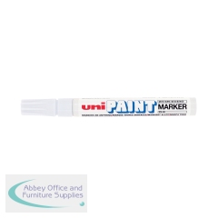 Unipaint PX-203 Paint Marker Fine Bullet White (12 Pack) 508341000. Oil based paint marker for waterproof marking. Perfect for writing on a range of surfaces. Sulphur and silicon free. Extra fine bullet tip for a 0.8mm line width.