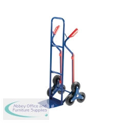 GPC Stairclimber Sack Truck with Skids GI370Y. Specially designed 150mm wheels on a 3 star system for use on stairs. Knuckle guard hand grips. Plastic coated skids. Maximum weight capacity of 60kg on stairs and 150kg on level ground.