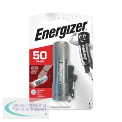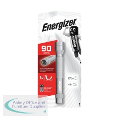 Energizer Metal Pocket Size LED Torch 25 Hour Run Time 2AA Silver 634041. Pocket-sized LED flashlight. 90 lumens. Projects beam up to 45m. Lightweight and durable. Tough metal casing. Uses 2xAA batteries.