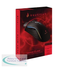 SureFire Buzzard Claw Gaming Mouse with RGB 6-Button 48836. Wired optical gaming mouse. LED RGB (13 modes) lighting skirt for mood and colour scheme adjustment. Six programmable buttons via software (Windows only). 1.8m braided cable.