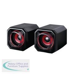 Surefire Gator Eye Gaming Speakers Red 48820. Powerful stereo 2.0 gaming speakers. Enhanced bass performance. Easy to reach volume control. USB powered. Works with all PC and laptops. 117x195x100mm (both speakers).