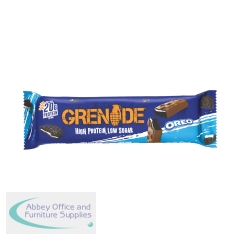 Grenade High Protein Bar Low Sugar Oreo (Pack of 12) C007177. Creme layer flavoured with Oreo vanilla and a nougat centre with Oreo cocoa. Topped with real Oreo pieces. 21g protein and 1g sugar. Coated in Granade\'s signature low sugar chocolate.