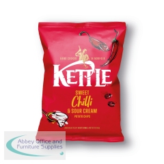 Kettle Sweet Chilli Sour Cream Crisps 40g (Pack of 54) FG001878. Hand cooked crisps made from high-quality potatoes. Gluten-free and suitable for Vegans. No artificial ingredients. Flavour: Sweet Chilli Sour Cream. Made in the United Kingdom. 40g bags.