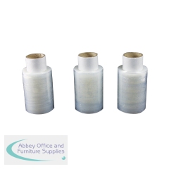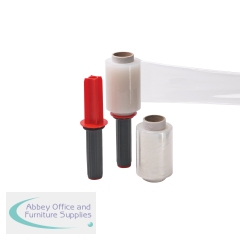 Stretch wrap mini rolls and dispenser with innovative handle that brakes to allow the film to snap away. Pack comes complete with 6 refill rolls of 100mmx150m stretch film.