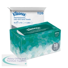 Kleenex Ultra Hand Towels V-Fold 3-Ply 96 Sheets White (Pack of 15) 6710. Unique Airflex technology absorbency. Pack of 15 x96 sheets per sleeve (1440 total). Colour: White.