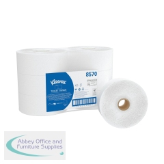 Kleenex 2-Ply Jumbo Toilet Roll White (Pack of 12) 8751. 2-ply tissue.180m per roll. Suitable for high traffic areas. Compatible with a variety of Kimberly-Clark jumbo roll dispensers. Designed to dissolve in water.
