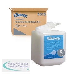 Kleenex Moisturising Hand and Body Lotion 1 Litre White (Pack of 6) 6373. For use with Aquarius dispensers 6948, 7134 and 7173. Light, non-greasy lotion. Dermatologically tested. Easy to install. Up to 1,000 shots of lotion per cartridge. Fragrance-free.