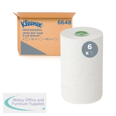 Kleenex Slimroll 1-Ply Hand Towels Rolled E-Roll White Pack of 6 6648. Use with Kimberly Clark Professional ICON dispensing system (53691/53940). Airflex Technology for effective absorbency. Embossed. 100% recyclable. Roll dims: (L) 135m x (W) 191mm.
