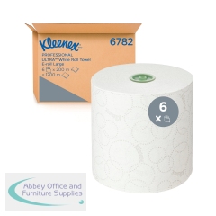 Kleenex 2-Ply Hand Towels Rolled E-Roll Large White (Pack of 6) 6782. Use with Kimberly Clark Professional ICON dispensing system (53691/53940). Airflex Technology for effective absorbency. Embossed. 100% recyclable. Roll dims: (L)200 meters x (W)191mm.