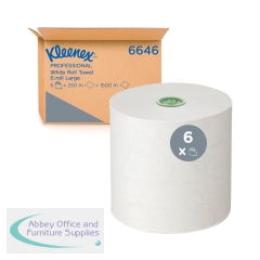 Kleenex 1-Ply Hand Towels Rolled E-Roll Large White (Pack of 6) 6646. Use with Kimberly Clark Professional ICON dispensing system (53691/53940). Airflex Technology for effective absorbency. Embossed. 100% recyclable. Roll dims: (L)250m x (W)191mm.