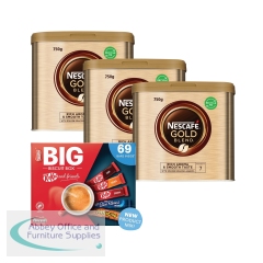 Nescafe Gold Blend Decaffeinated One Cup Coffee Sachets (Pack of 200) 12340522. Handy individual servings. Bold flavours and refreshing feel. Decaffeinated for all of the flavour, but with no caffeine. Individual sachet sticks.