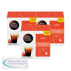 Nescafe Dolce Gusto Cafe Lungo Coffee Capsules (Pack of 48) 12562075. This long espresso, is a shot of espresso made with a little more water. Balanced and roasty. Pack of 48 supplied in 3 boxes containing 16 capsules. Each pack makes 48 drinks.