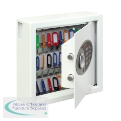 Phoenix Electronic Key Safe 30 Keys KS0031E. Programmable electronic lock with key override. Can be bolted to the wall. W300 x D100 x H280mm. White. Comes with 2 keys.