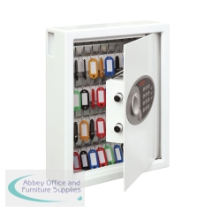 Phoenix Electronic Key Safe 48 Keys KS0032E. Programmable electronic lock with key override. Can be bolted to the wall. W300 x D100 x H360mm. White. Comes with 2 keys.