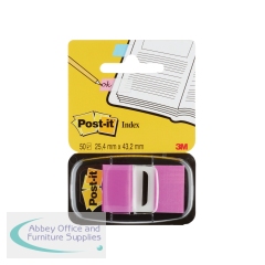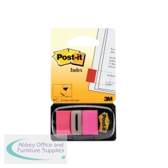 3M Post-it Index - Bright Pink. Tabs for convenient page marking. Clear so copy will show through. Durable - will not tear or pop off. Removable so can be re-used. Tabs can be written on. 25mm x 44mm. 50 per dispenser. Bright pink.