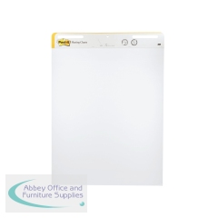 3M Post-it Super Sticky Meeting Flip Chart White Flipcharts with a difference. Featuring a Super Sticky adhesive strip. Ideal for use in meeting rooms for training brainstorming or planning. A1 sheets 63.5cm x 77.5cm. Includes 2 pads 30 sheets each.