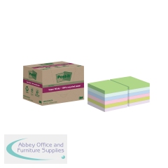 Post-it Super Sticky Recycled 76x76mm Assorted (Pack of 12) 654 RSS12COL. Size: 76 x 76mm. Super Sticky adhesive (twice as sticky as original Post-it notes). Made from 100% recycled and fully recyclable paper.