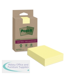 Post-It Recycled Notes 100 Sheets 76x76mm Canary Yellow (Pack of 6) 6541B. Great for leaving reminders. Perfect for use in offices, schools and at home. Ensure messages get through with a colourful background. Once open, use cabinet pack to easily store.