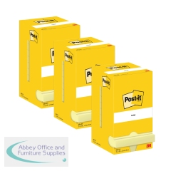 Post-It Notes 76x76mm 100 Sheets Canary Yellow Pack 12 3 for 2. Recycled cardboard packaging that can be recycled again. 100 sheets per pad. Colour: Canary yellow. Pack of 24 + 12 FREE (36 in total).