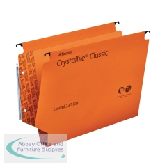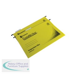 Crystalfile Flexifile. Brightly coloured manilla suspension files ideal for use in colour coded filing systems. Features a wrap-over bar design flexitabs and inserts which are snap proof and easy to fit. Size - Foolscap. Capacity - 15mm. Yellow.