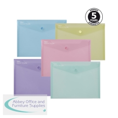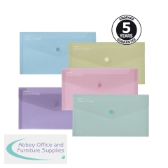 Snopake Reborn Polyfile DL Assorted (Pack of 5) 15908. 100% recycled polypropylene. 100% recyclable. Holds up to 50 sheets of paper. Transparent superline finish for easy identification of contents. Coordinated press-stud closure. 5 year guarantee.