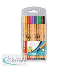 Stabilo Point 88 Fineliner Pen Wallet Assorted (Pack of 10) 8810. Hexagonal fineliner with metal encased tip for long life. Suitable for rulers and stencils. Water based ink. Does not dry out quickly. Ventilated cap. Wallet of 10 assorted colours.