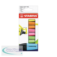 Stabilo Boss Mini Highlighters Card Wallet Assorted (Pack of 5) 07/5-2-01. Line Width: 2-5mm. Wedge tip draws broad and fine lines for highlighting and underlining. Stabilo Anti-dry out ink technology for up to 4 hours cap off time.