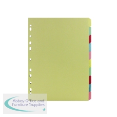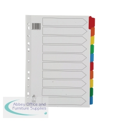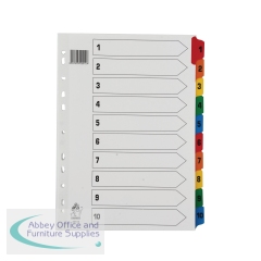 Set of 10 A4 dividers numerically tabbed (1-10). Ideal for well-organised filing. Punched to fit most standard A4 files. Index page: at-a-glance view of sections. Colour: White with multi-coloured tabs.