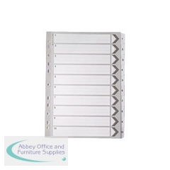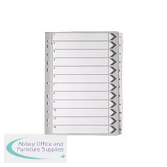 Set of 12 A4 dividers numerically tabbed (1-12). Ideal for monthly filing. Punched to fit most standard A4 files. Mylar-reinforced tabs and holes for durability. Index page: at-a-glance view of sections. Colour: White with matching white tabs.