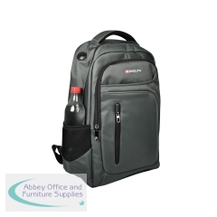 Monolith 15.6 Inch Business Commuter Laptop Backpack USB/Headphone Port Padded Pocket Charcoal 9115D. Large capacity. Hidden rear security pocket. Side pockets. Rear strap for use with trolley cases. Padded adjustable shoulder straps/top carry handle.